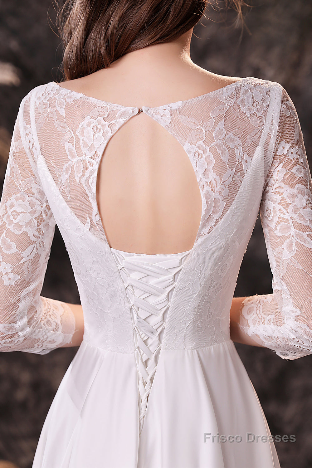 A Line 3/4 Sleeve Ombre Silk Like Satin Sweep Train Prom Dresses