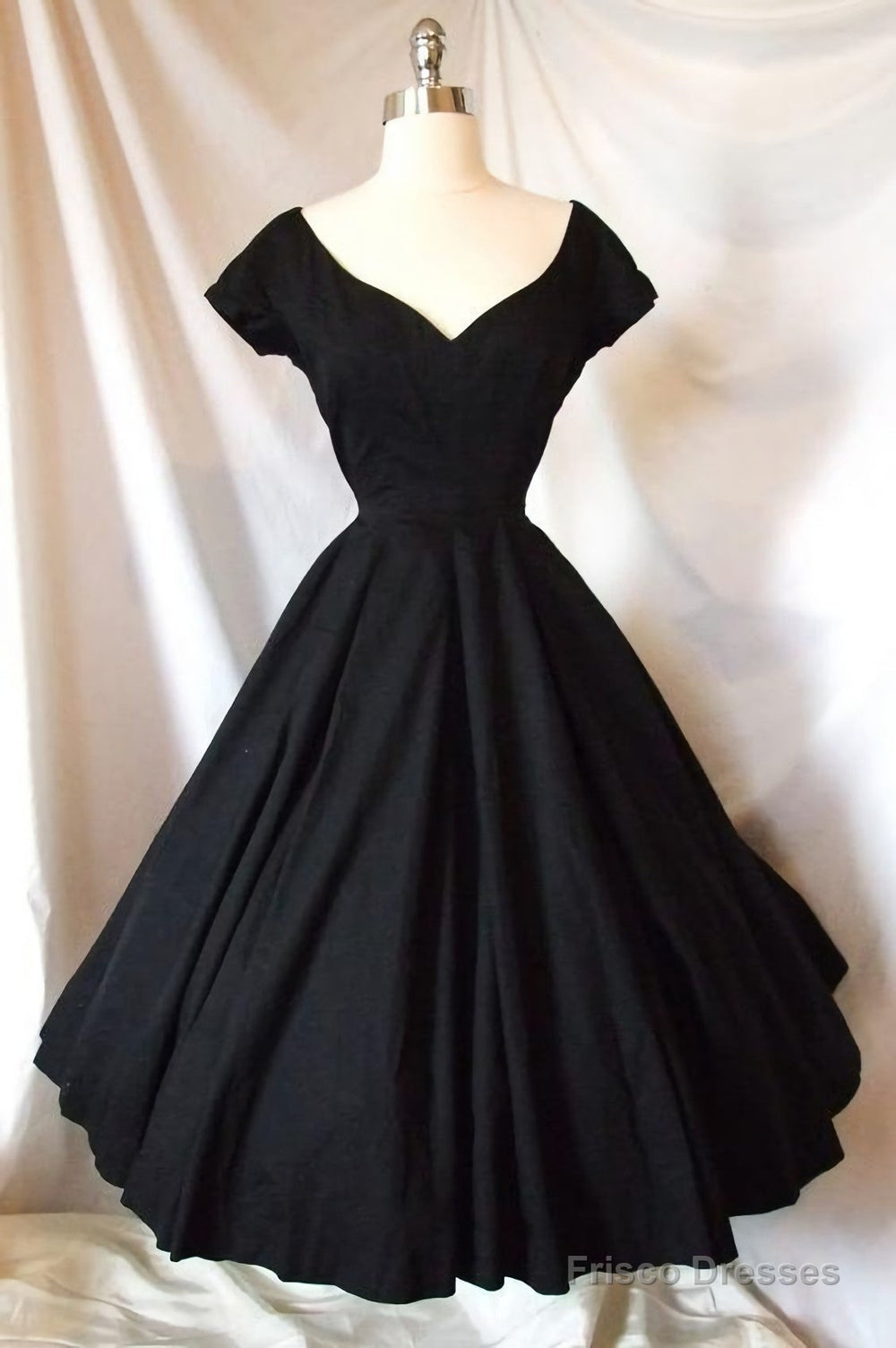 A Line Black Satin Cocktail Party Dresses, Homecoming Dress