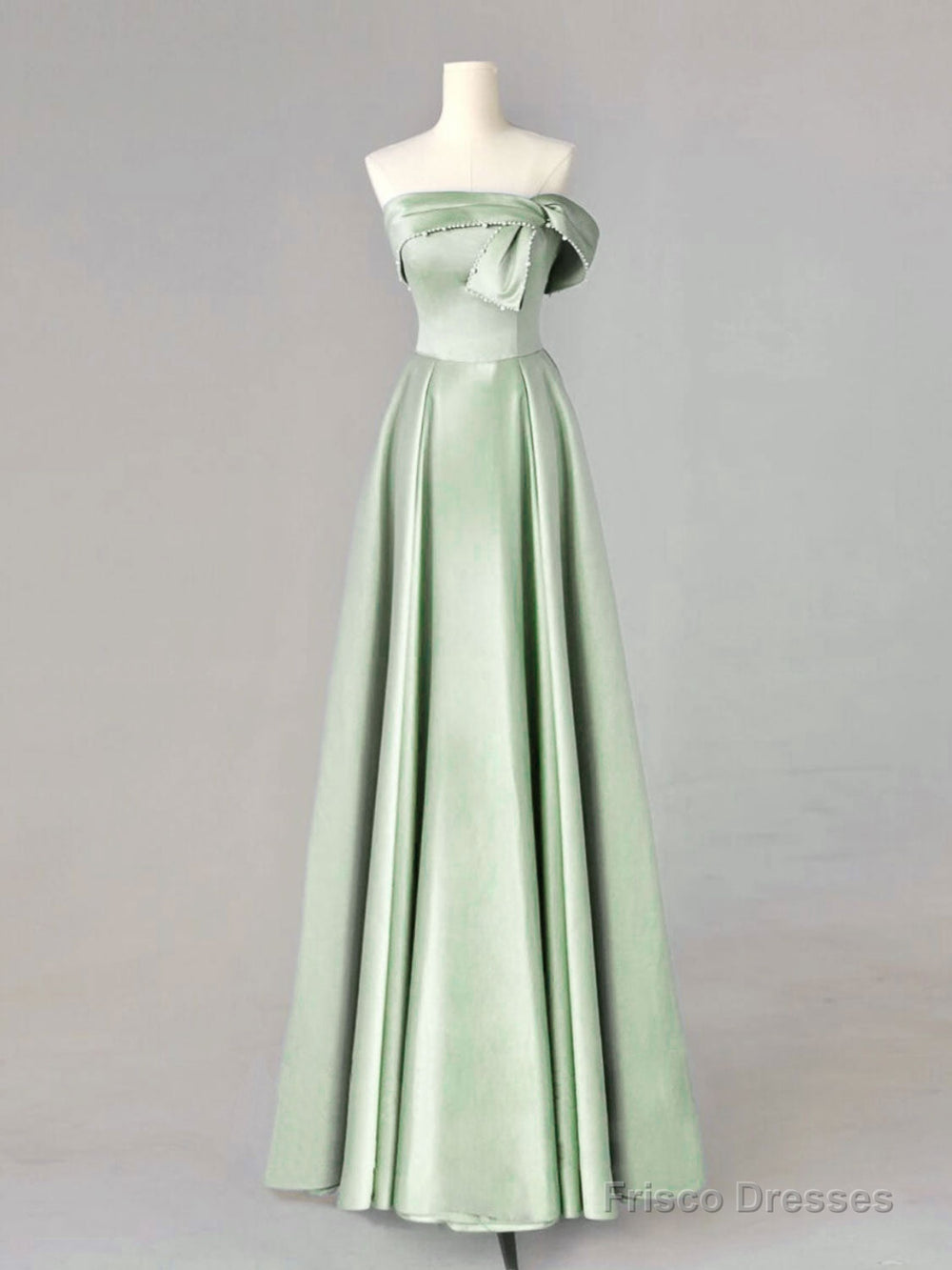 A-Line Blue Satin Long Prom Dresses, Blue Formal Evening Dresses
