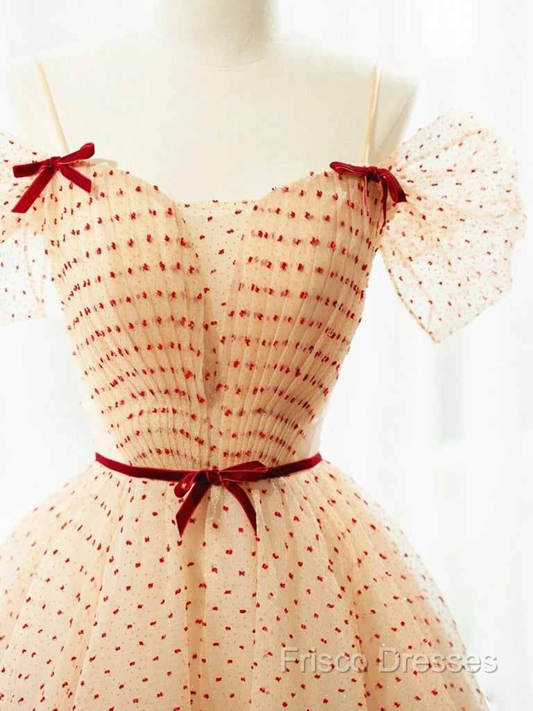 A-Line Champagne Tulle Long Formal Prom Dress, Champagne Long Formal Dress