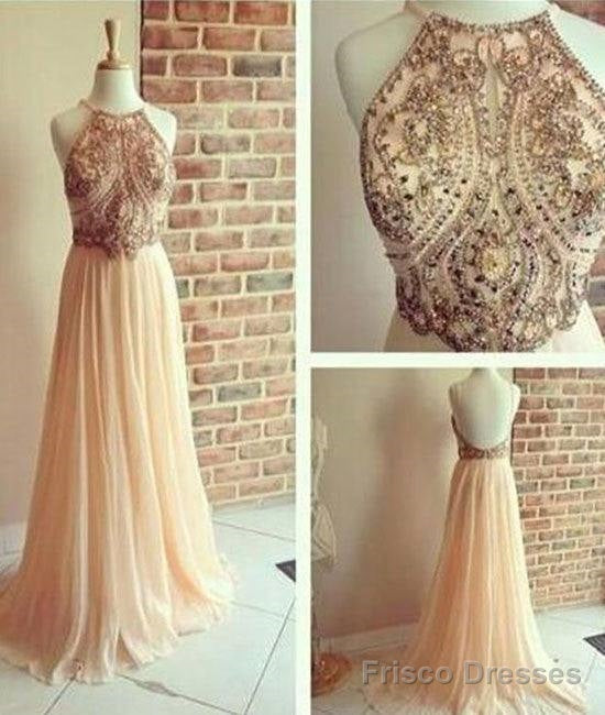 A Line Chiffon Backless Beading, Sequin Long Prom Dresses