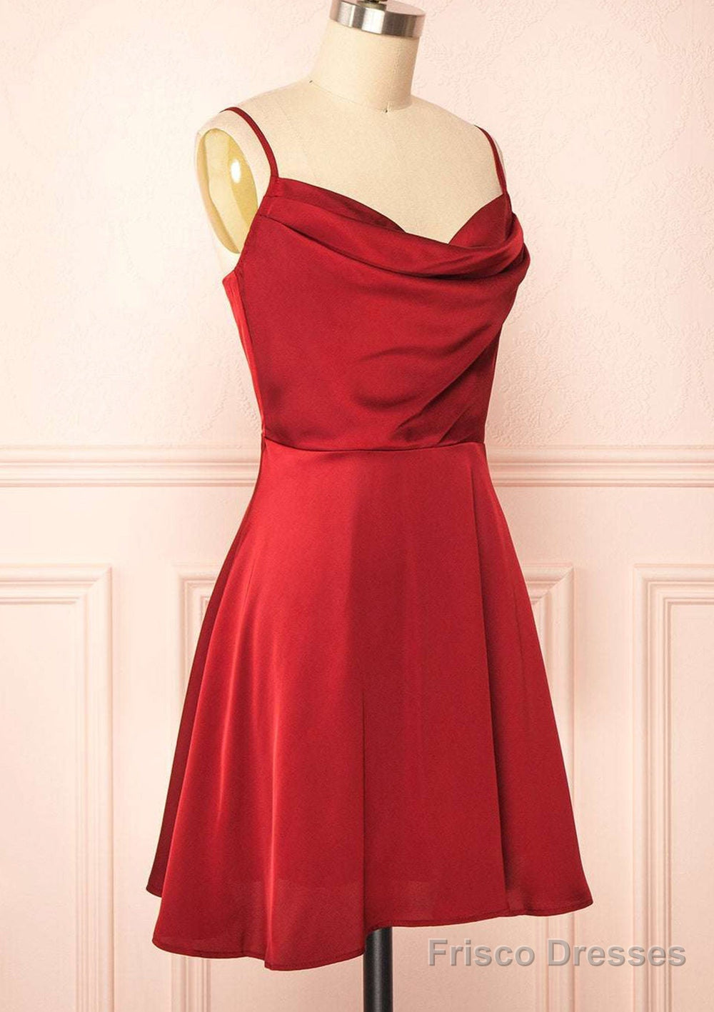 A-Line Cowl Neck Sleeveless Short/Mini Charmeuse Red Homecoming Dress With Pleated