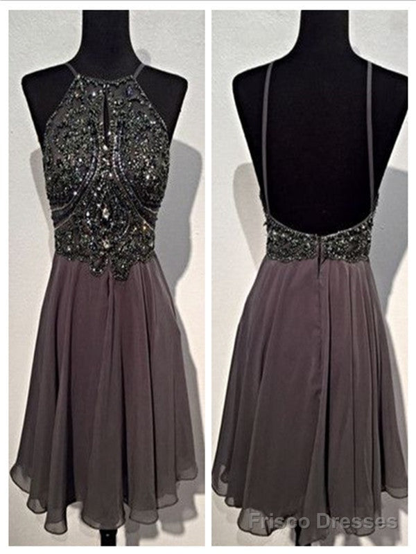 A Line Round Neck Short Grey Backless Prom Dress, Short Grey Backless Formal Dress, Homecoming Dress, Graduation Dress