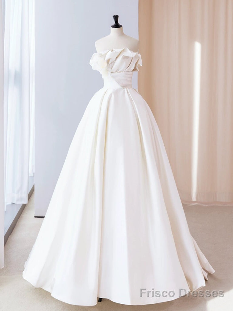 A-Line Satin Ivory Long Prom Dress, Ivory Long Evening Dress