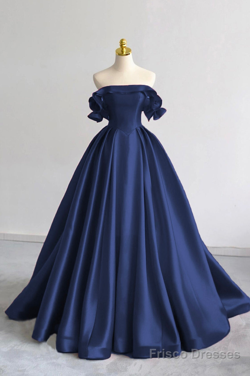 A-Line Satin Long Prom Dress, Elegant Off The Shoulder Evening Party Dress