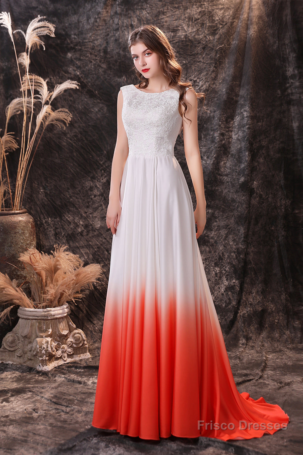 A Line Sleeveless Ombre Silk Like Satin Sweep Train Prom Dresses