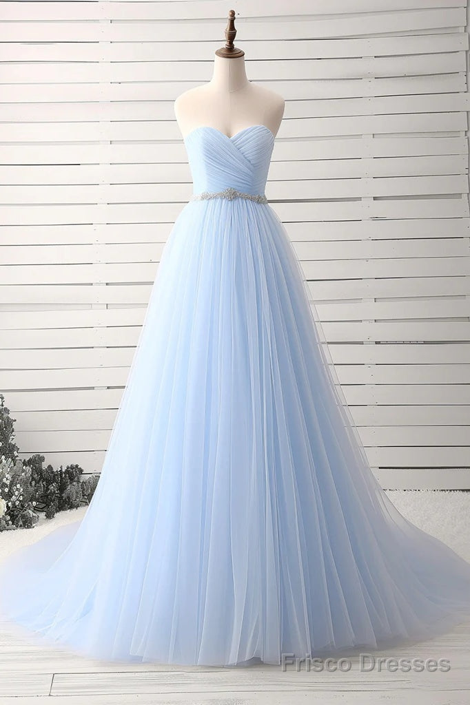A-Line Sweetheart Neck Tulle Light Sky Blue Long Prom Dress