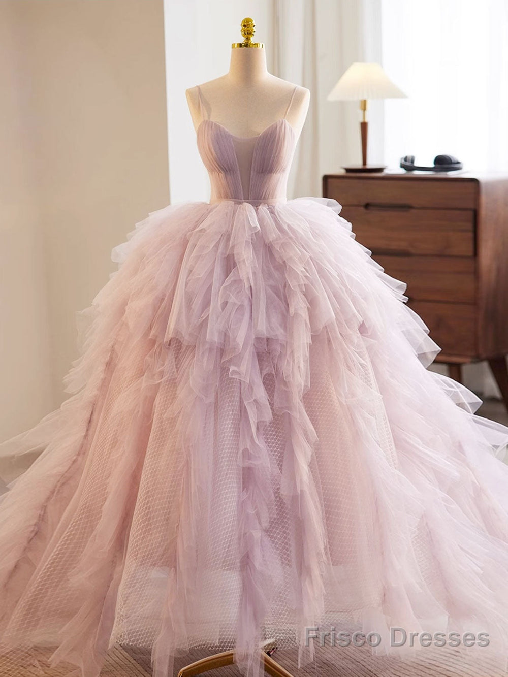 A-Line Sweetheart Neck Tulle Pink Long Prom Dress, Pink Evening Dress