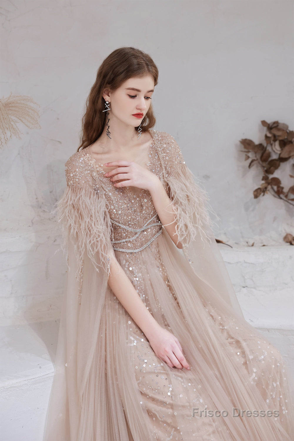 A Line V-neck Shiny Sequin Beaded Prom Dresses