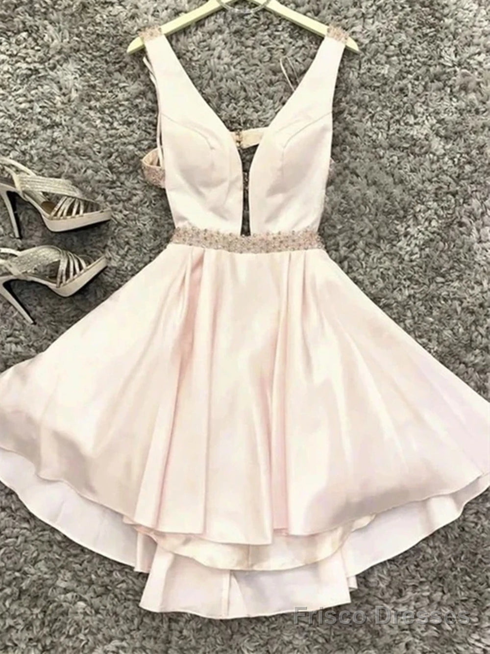 A Line V Neck Short Pink Prom Dresses, Short Pink Formal Graduation Homecoming Dresses