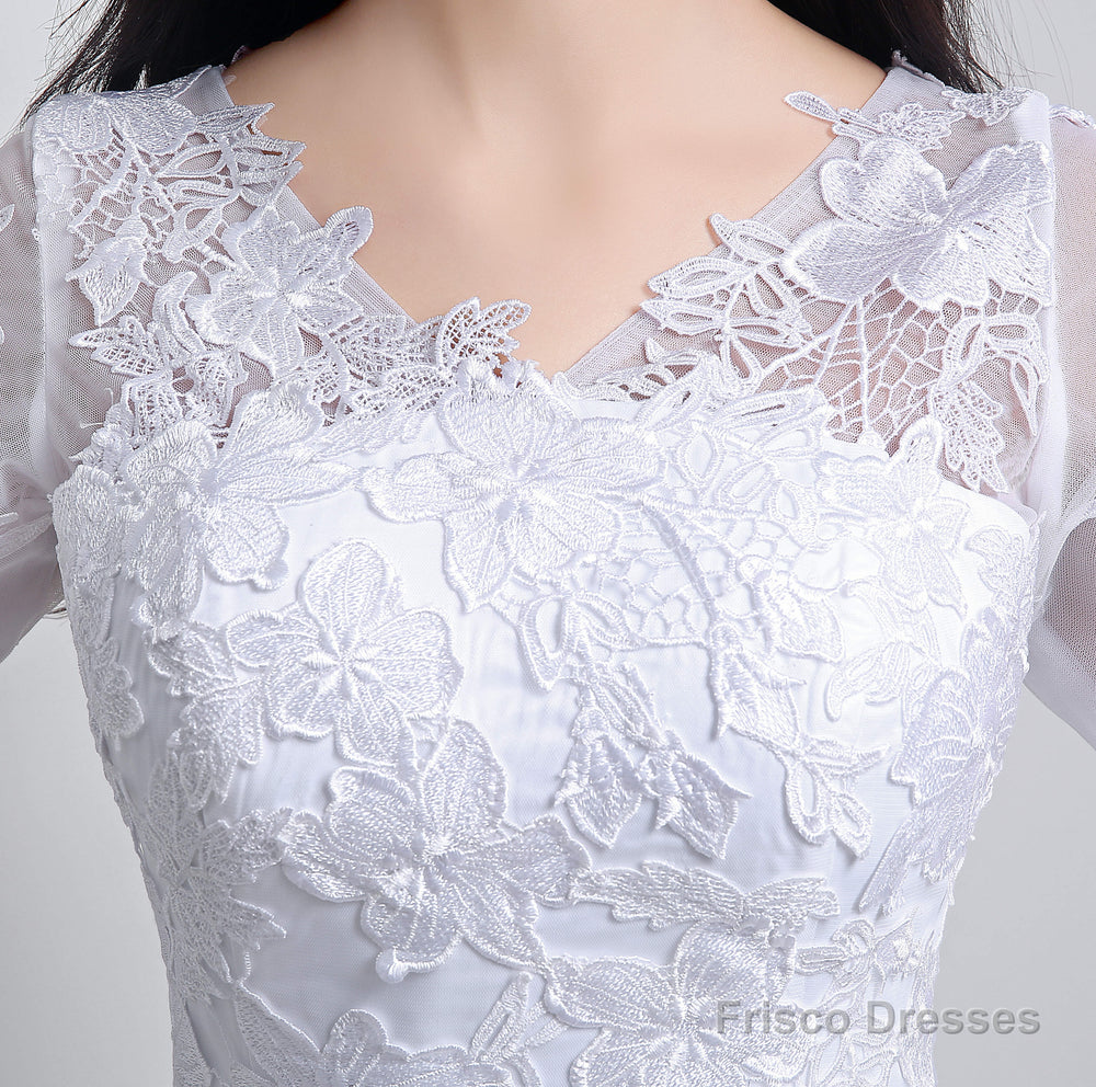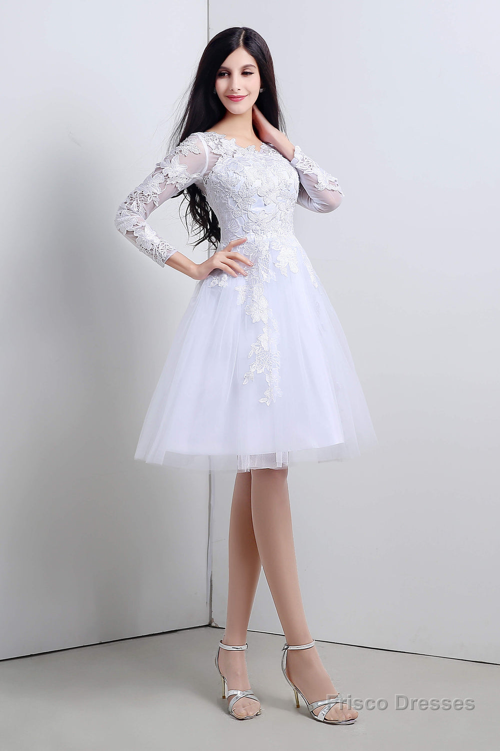 A-Line White Tulle Appliques Long Sleeve Homecoming Dresses