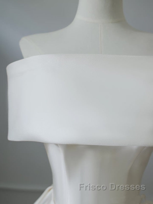 Aesthetic Ball Gown Strapless Ivory Satin Long Wedding Dress Brides Dress