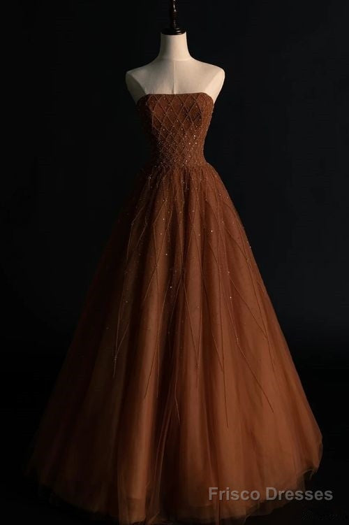 Ball Gown Strapless Tulle Long Prom Dress Evening Dresses