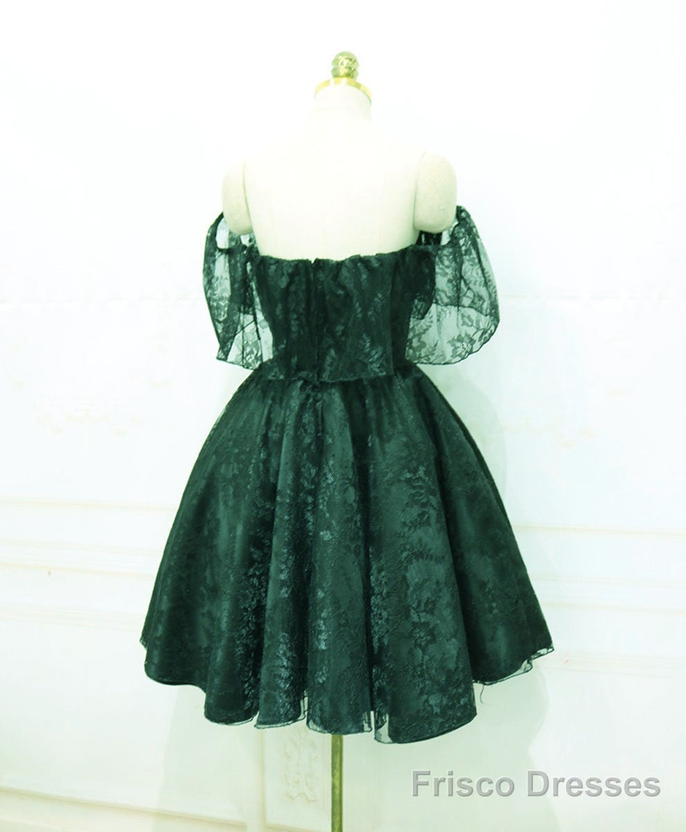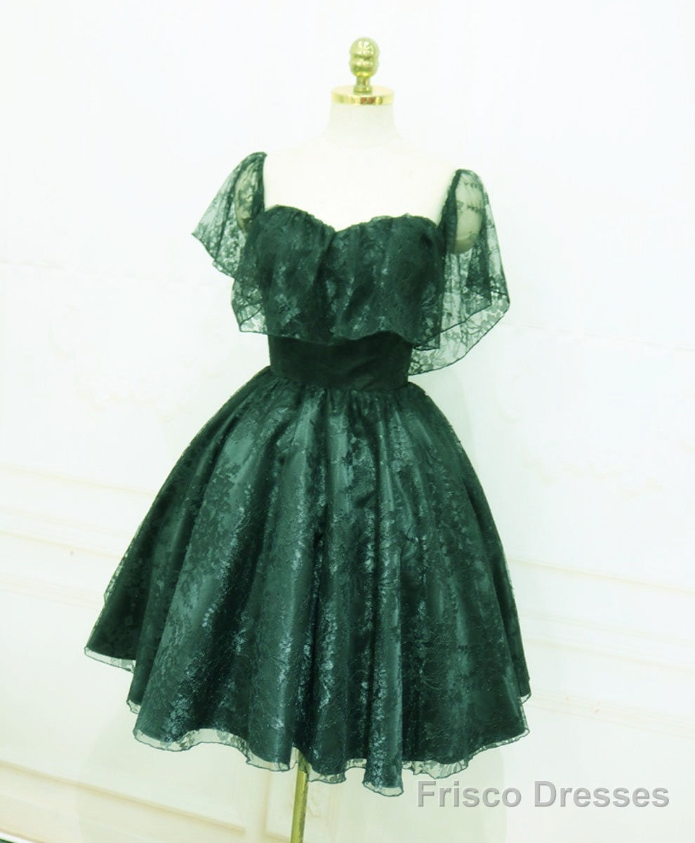 Beautiful Lace Green Off Shoulder Knee Length Party Dress, Bridesmaid Dress