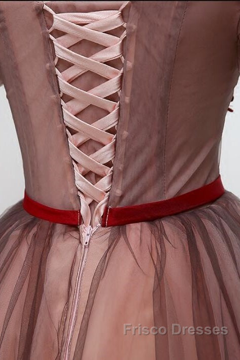 Beautiful Off Shoulder Tulle Knee Length Party Dress , Red Homecoming Dress With Applique