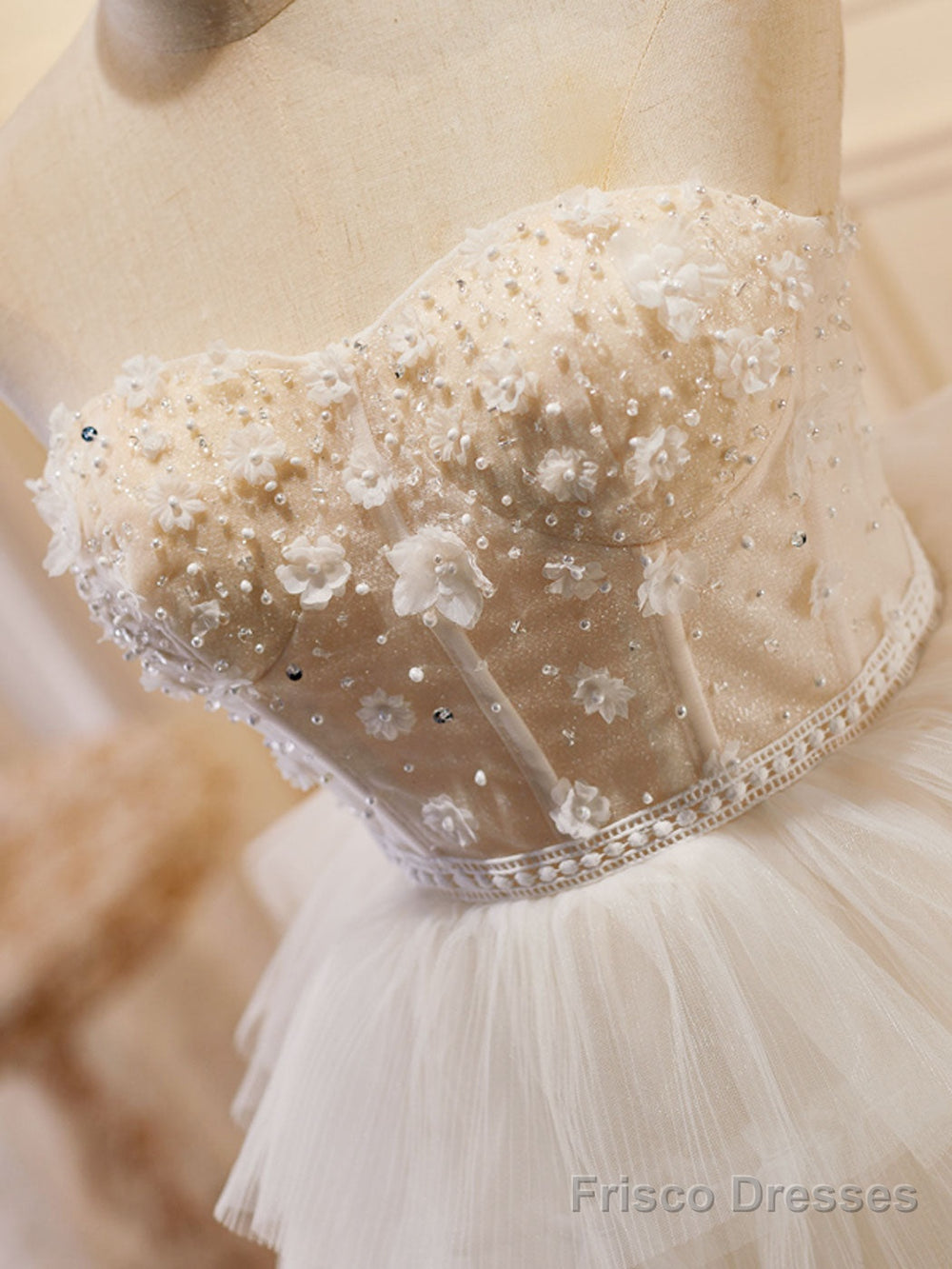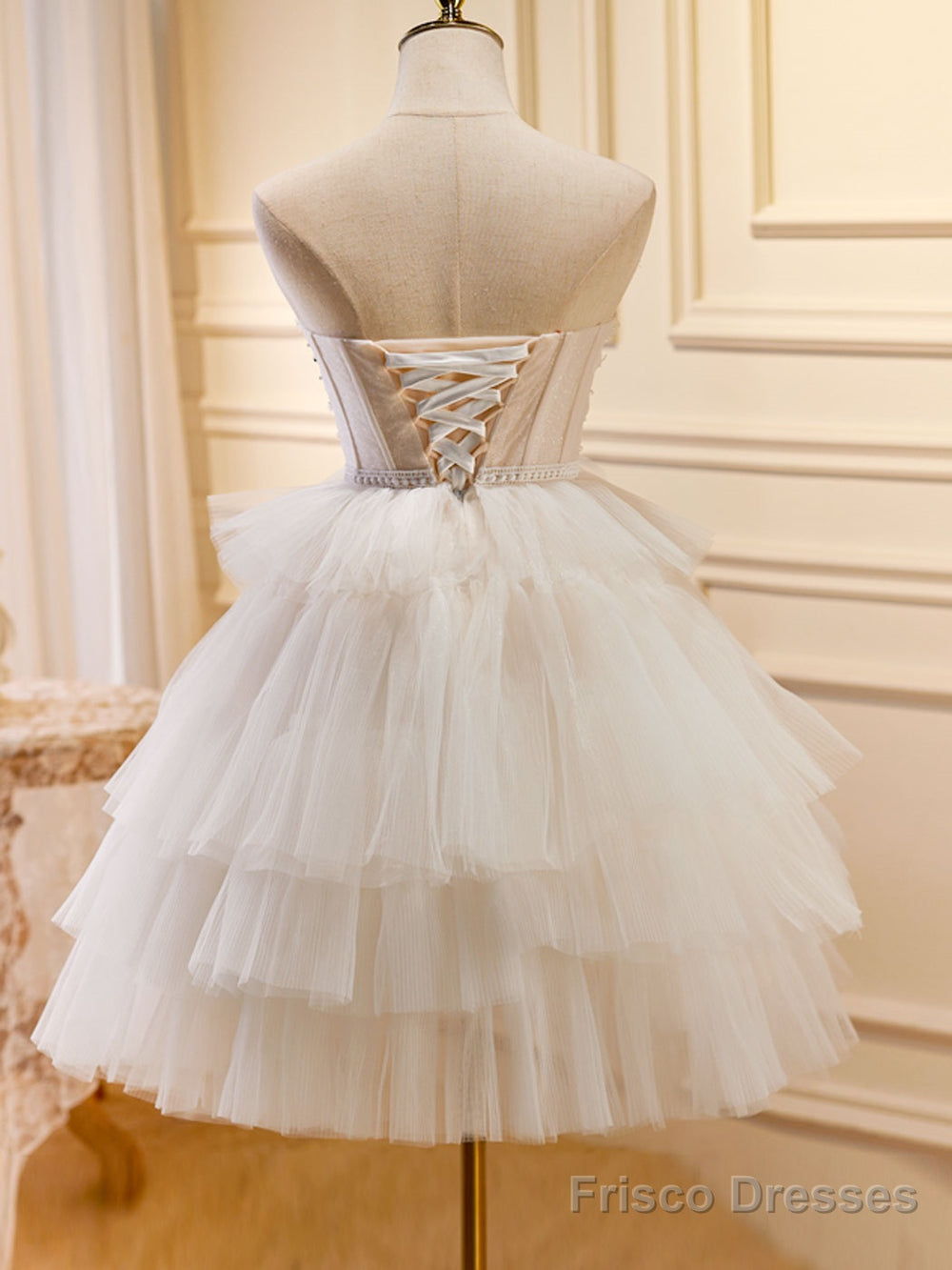 Beige Sweetheart Neck Tulle Short Prom Dress, Beige Homecoming Dress