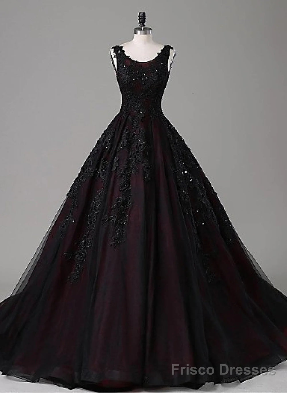 Black And Red Backless Tulle Long Formal Gown, Black And Red Long Prom Dress