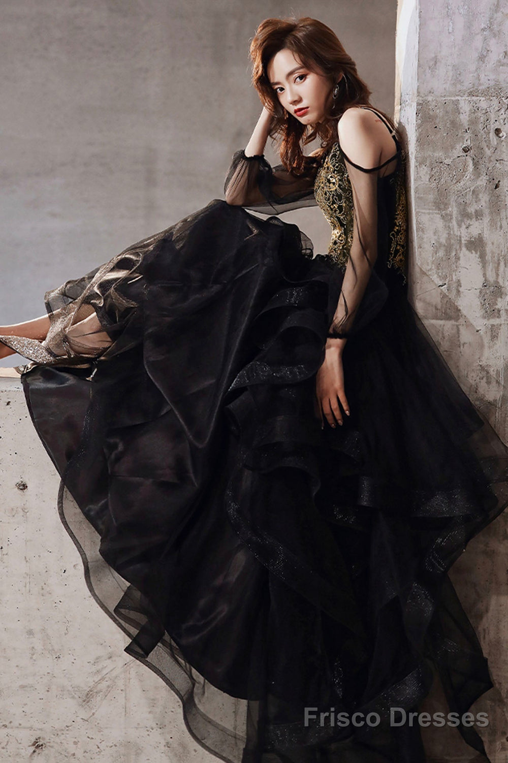 Black Spaghetti Strap Lace Long Prom Dress, Black Evening Graduation Dress