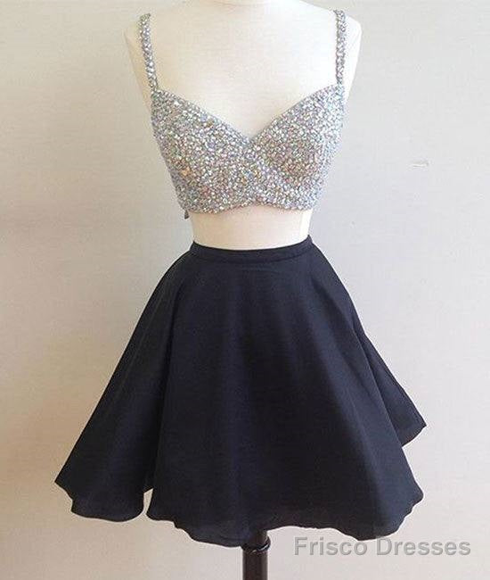Black Two Pieces Short Prom Dress, Two Pieces Homecoming Dress