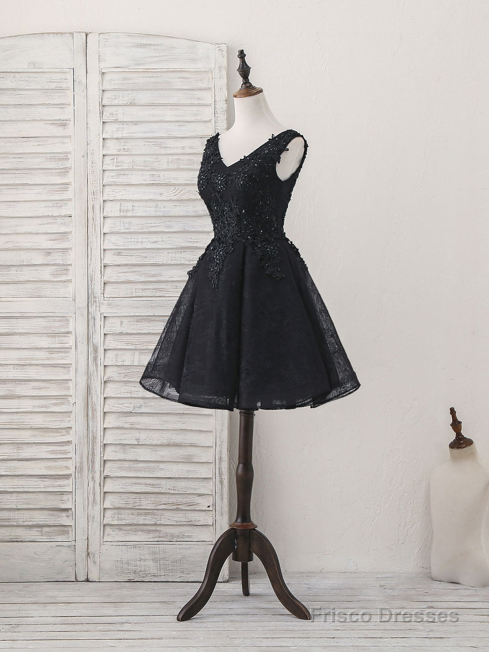Black V Neck Lace V Neck Short Prom Dress, Black Homecoming Dress