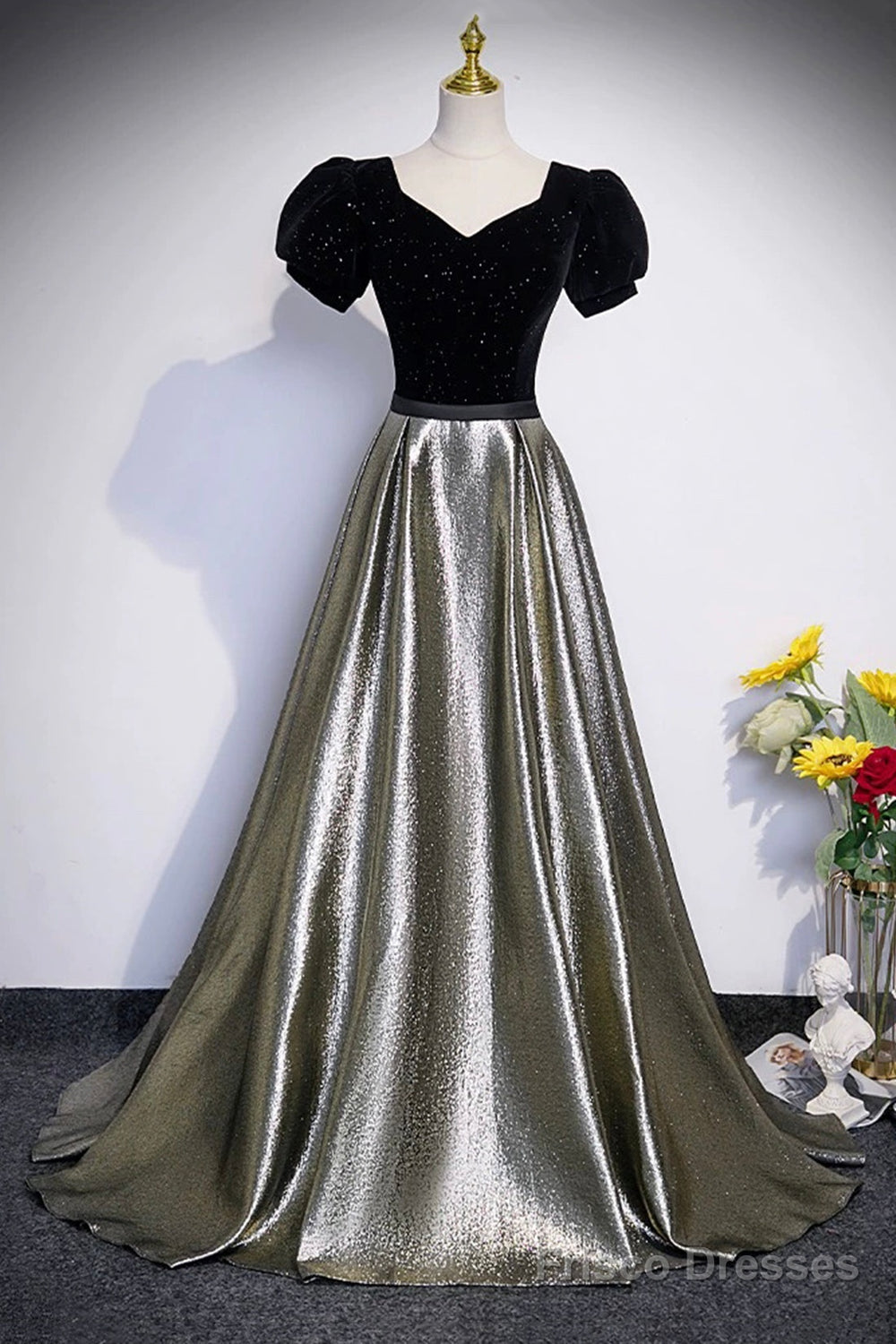 Black Velvet And Shiny Satin Long Prom Dress, Beautiful A-Line Evening Party Dress