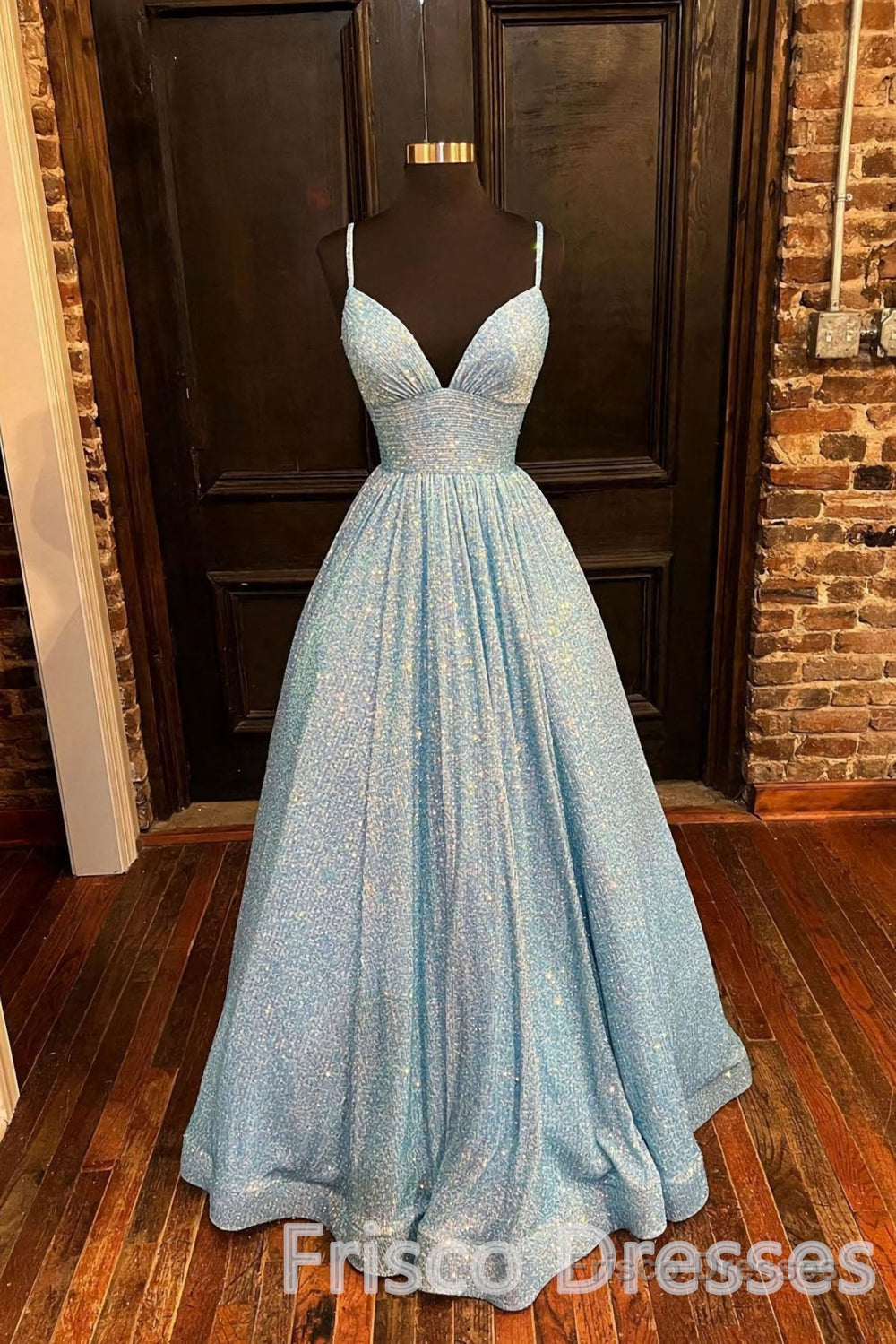 Blue A-Line V-Neck Simple Sequin Formal Evening Dresses Long Prom Dresses