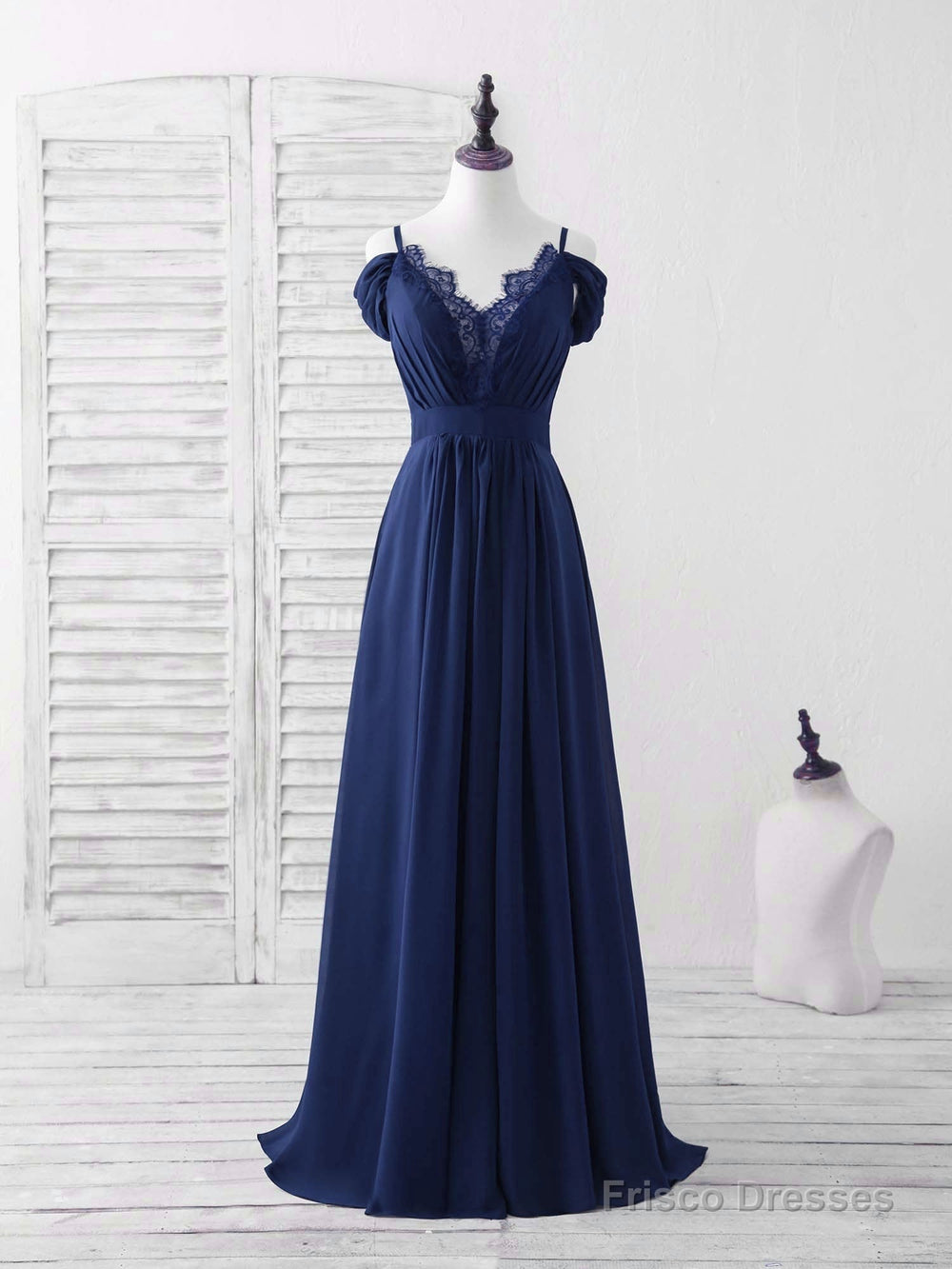 Blue Lace Chiffon Long Prom Dress Blue Bridesmaid Dress