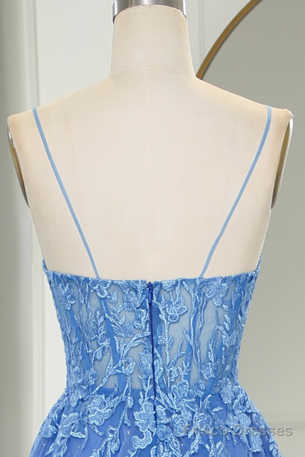 Blue Long Prom Dress Cheap A-Line Formal Dress Tulle With Appliques