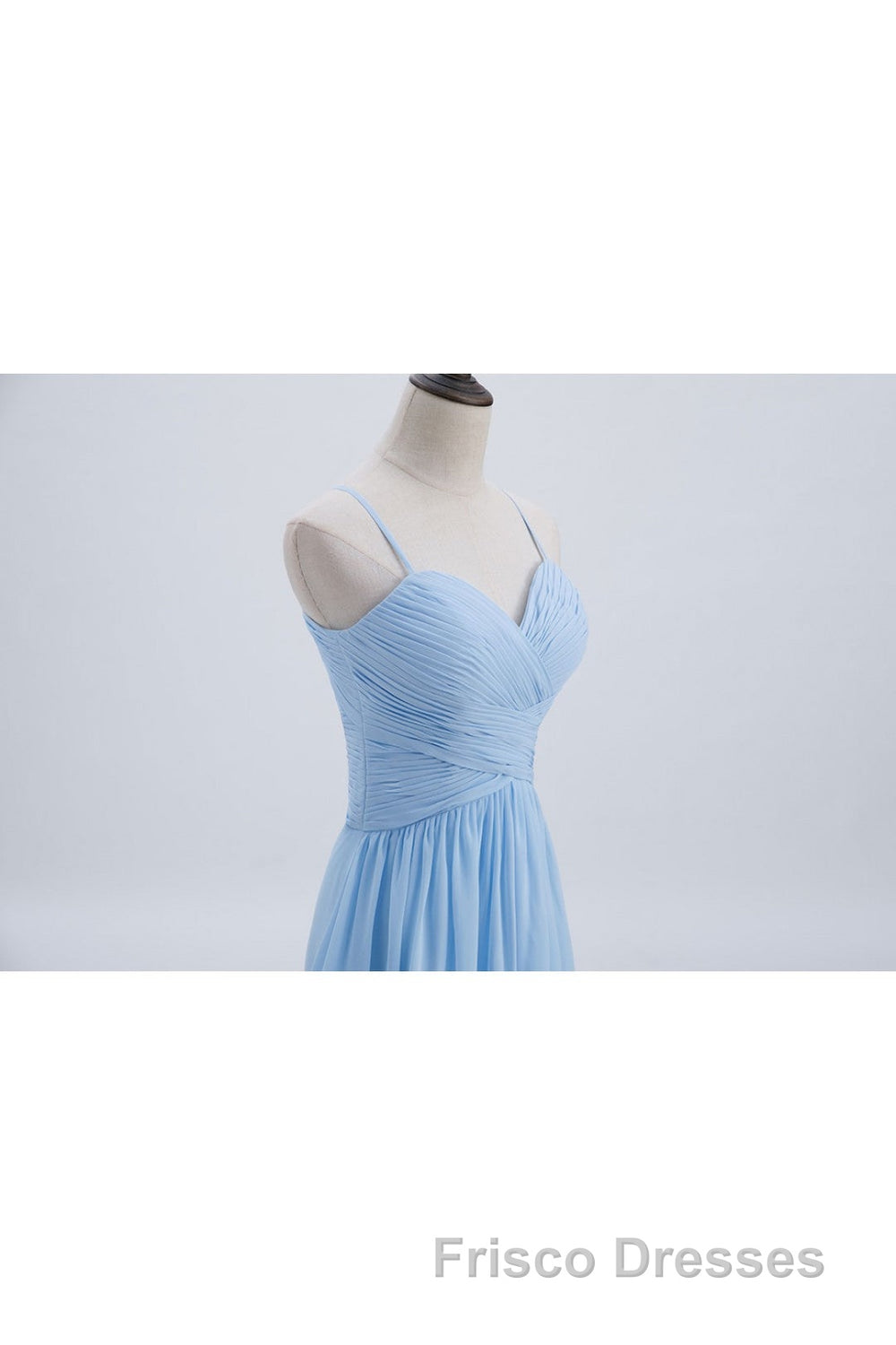 Blue Pleated Straps Chiffon Long Bridesmaid Dress