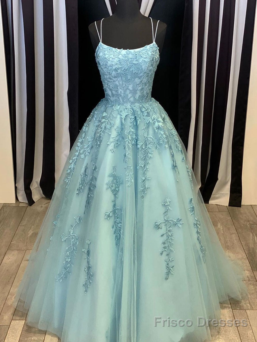 Blue Tulle Lace Long Prom Dress Blue Tulle Lace Evening Dress