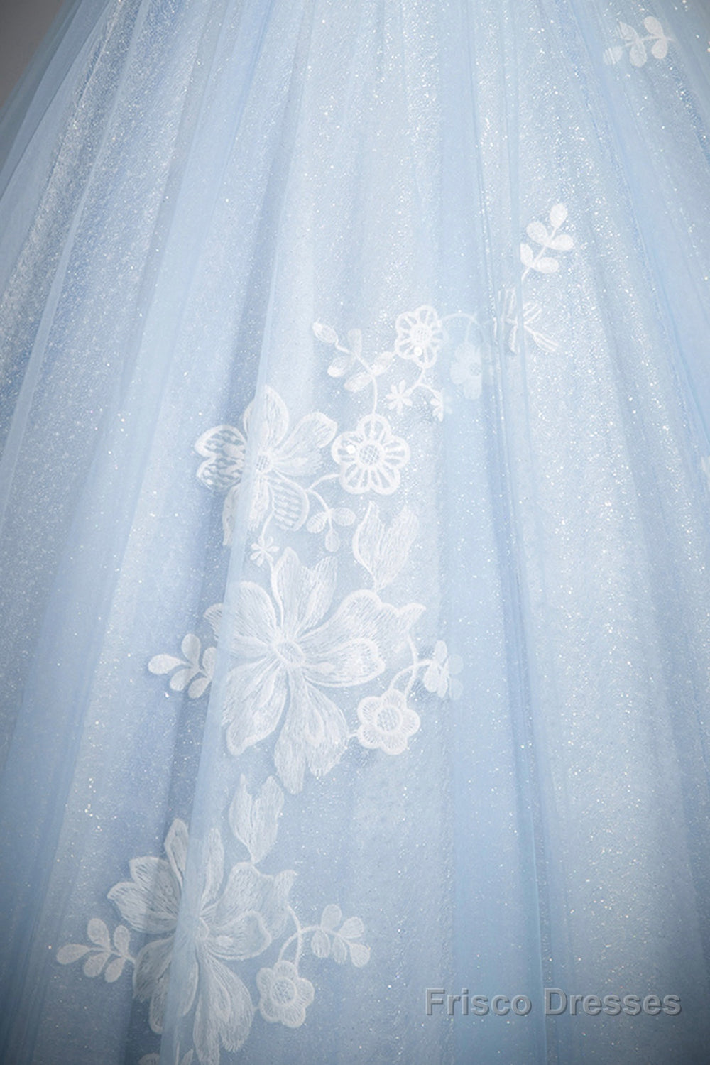 Blue Tulle Lace Long Prom Dress, Off The Shoulder Evening Party Dress