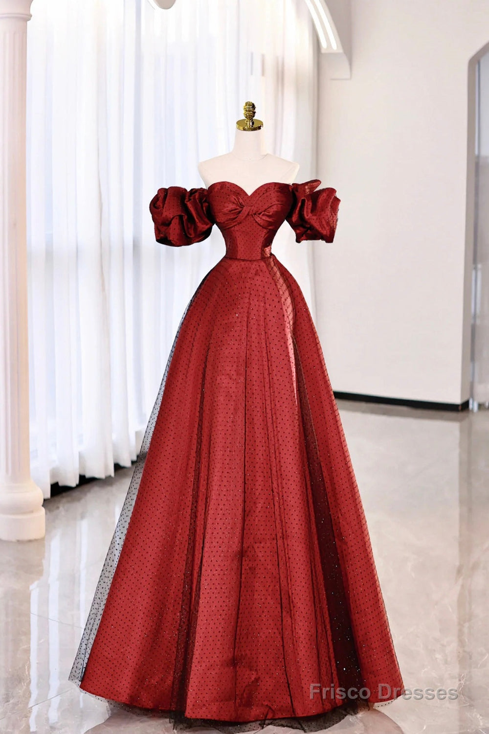 Make a grand entrance in our Burgundy Satin Tulle Long Prom Dress that doubles as a stunning off-shoulder evening party dress. The combination of satin and tulle creates a breathtaking look, while the off-shoulder neckline adds a touch of allure and sophistication. Perfect for prom or any special evening occasion, this dress will make you feel like the belle of the ball, commanding attention with its elegant and enchanting style.