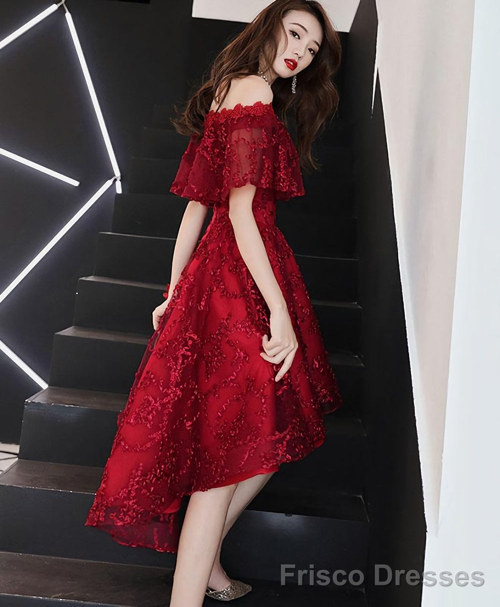 Burgundy Tulle Lace Short Prom Dress Burgundy Homecoming Dress 5