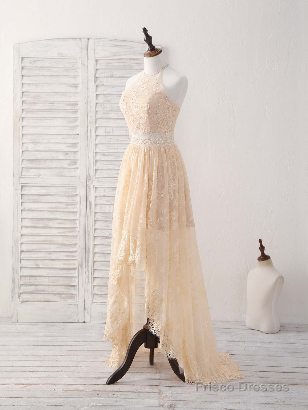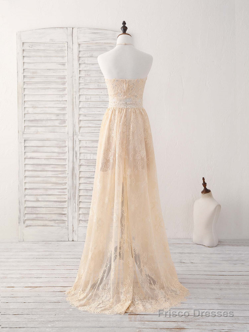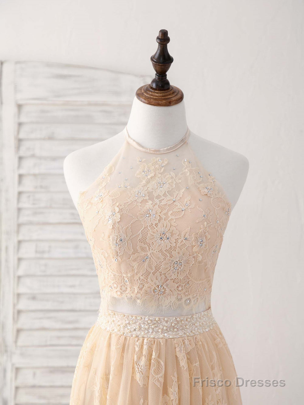 Champagne Two Pieces Lace Long Prom Dress Lace Evening Dress