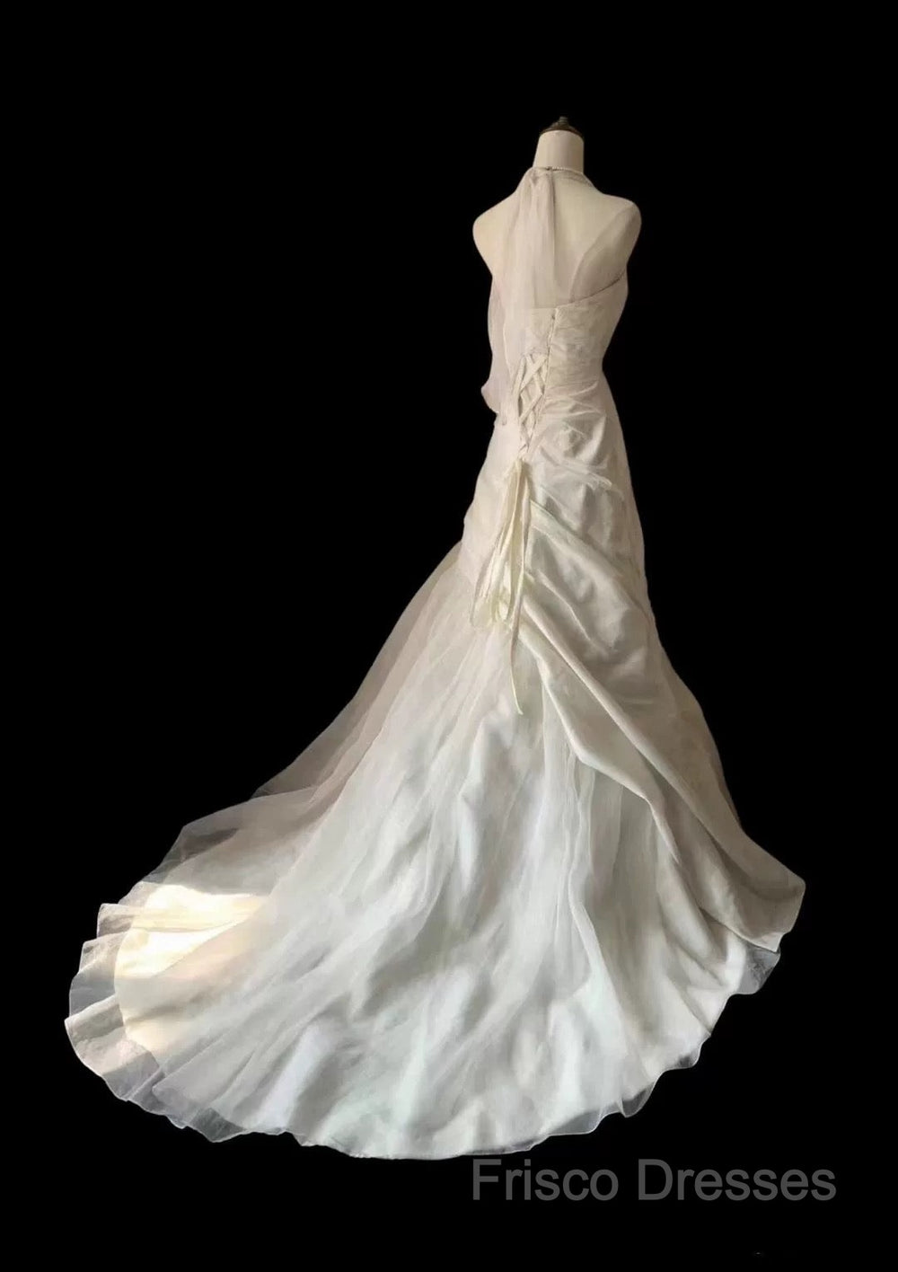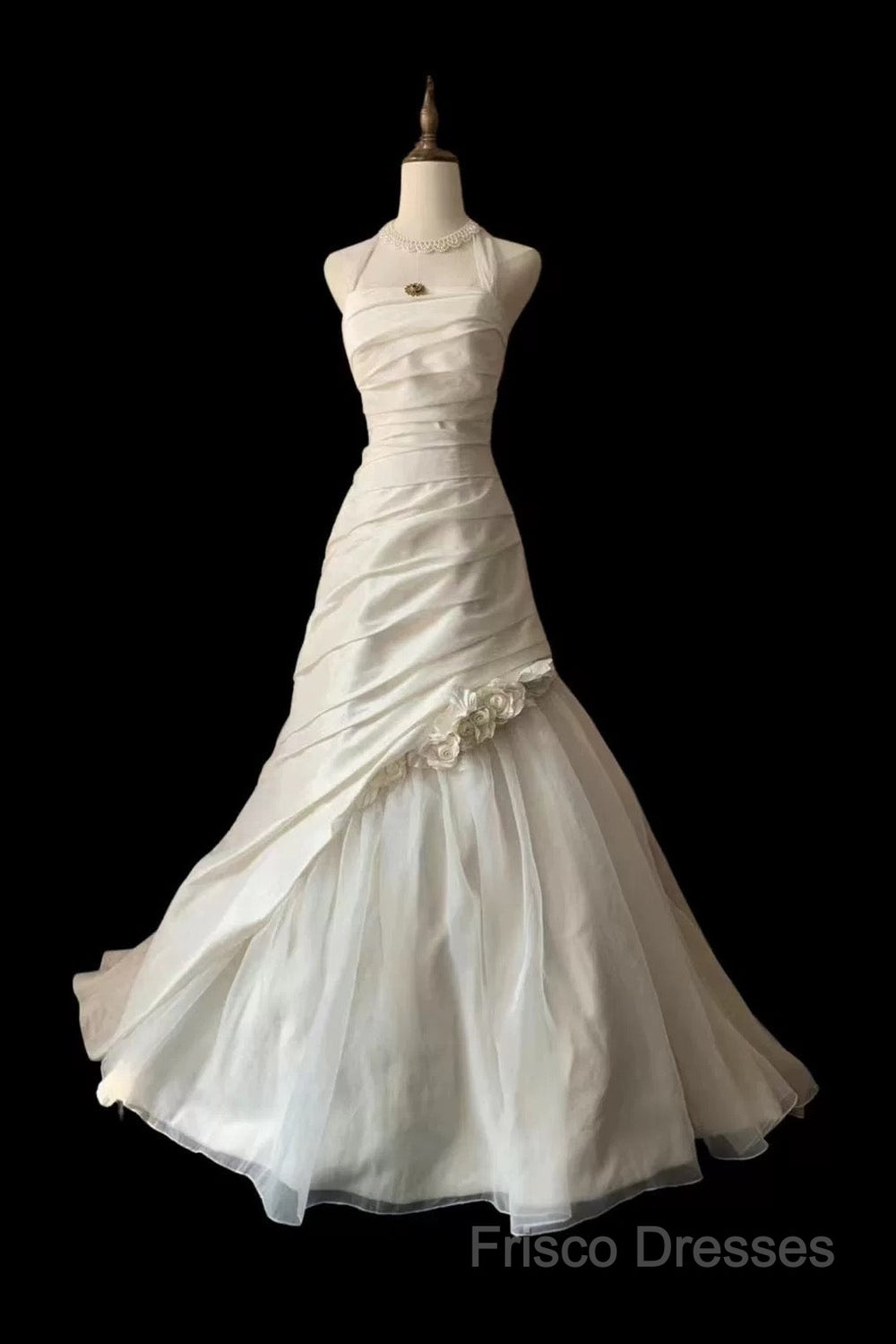 Chic Mermaid Halter Satin Ivory Long Wedding Dress Bridal Dress