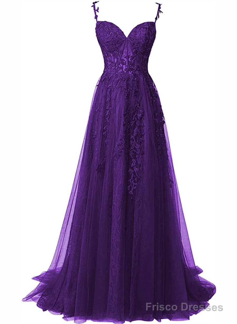 Chic Purple Sweetheart Straps Long Tulle Party Dress, Purple Long Evening Dress