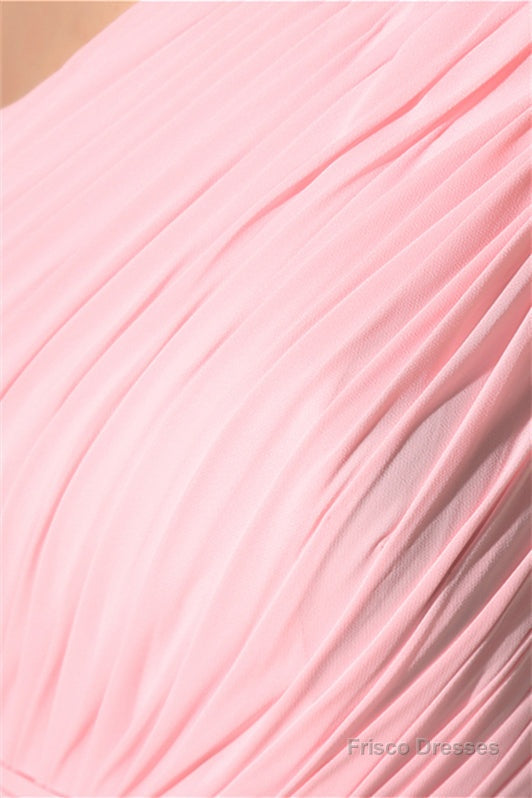 Chiffon Pink One Shoulder Long Bridesmaid Dresses