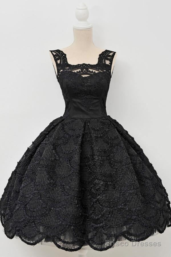 Classic Square Knee-Length Sleeveless Black Lace Homecoming Dress