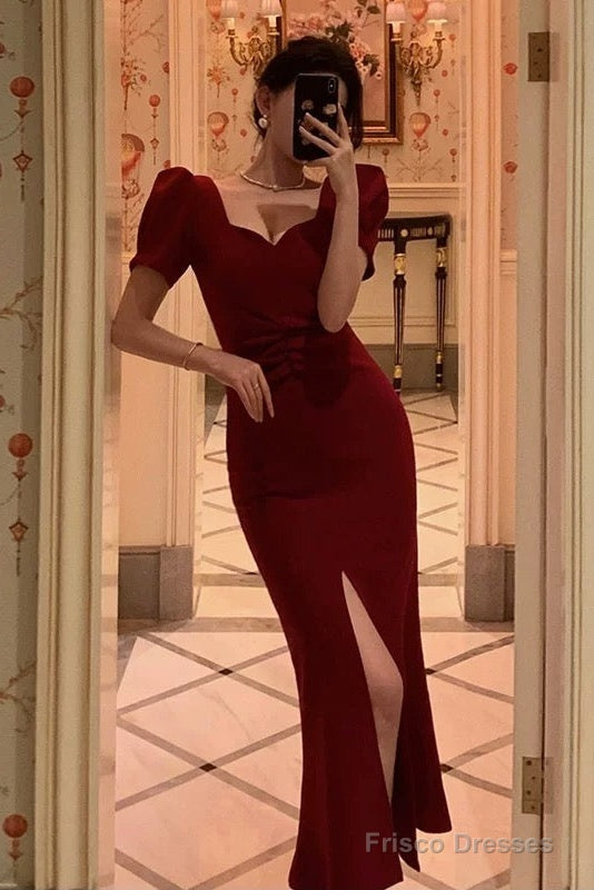 Classy Sheath Sweetheart Neckline Short Sleeves Red Prom Dresses Birthday Outfits Evening Gown