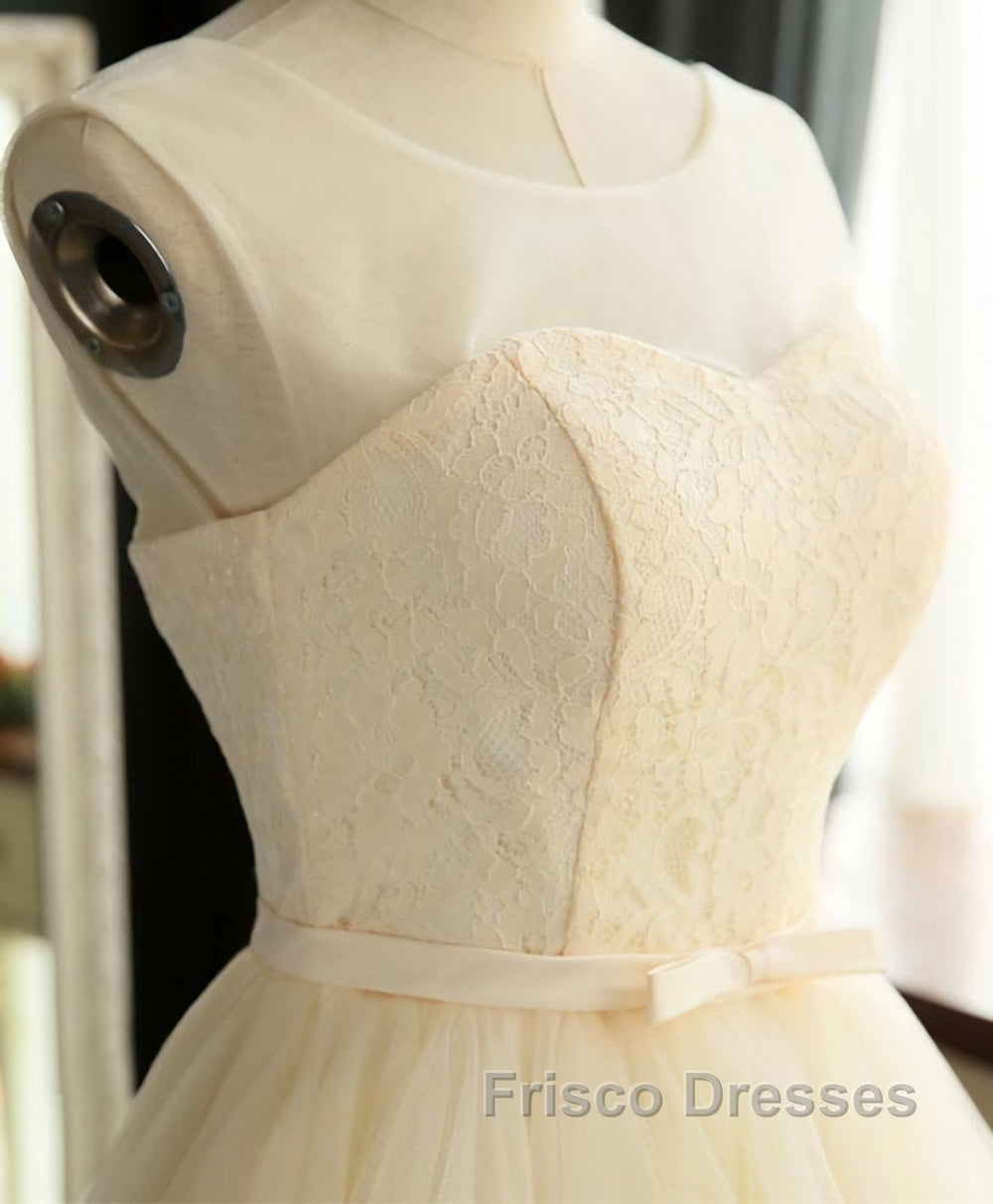 Cute A Line Tulle Round Neck Mini Formal Prom Dress, Cheap Evening Dress