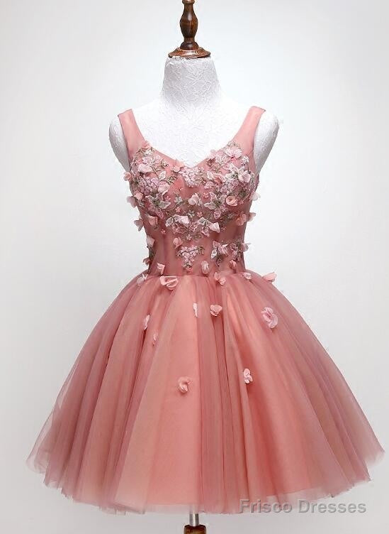 Cute Dark Pearl Pink Knee Length V-Neckline Flower Homecoming Dress, New Party Dresses