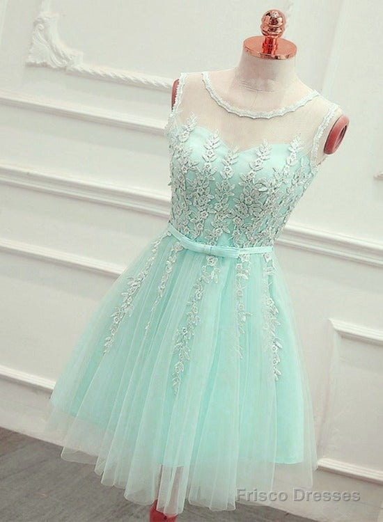 Cute Mint Green Tulle Short Party Dress With Lace Applique, Homecoming Dress
