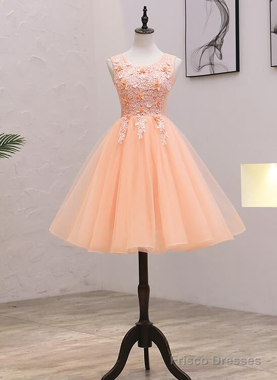 Cute Pink Flowers And Lace Applique Round Neckline Party Dress, Pink Homecoming Dress