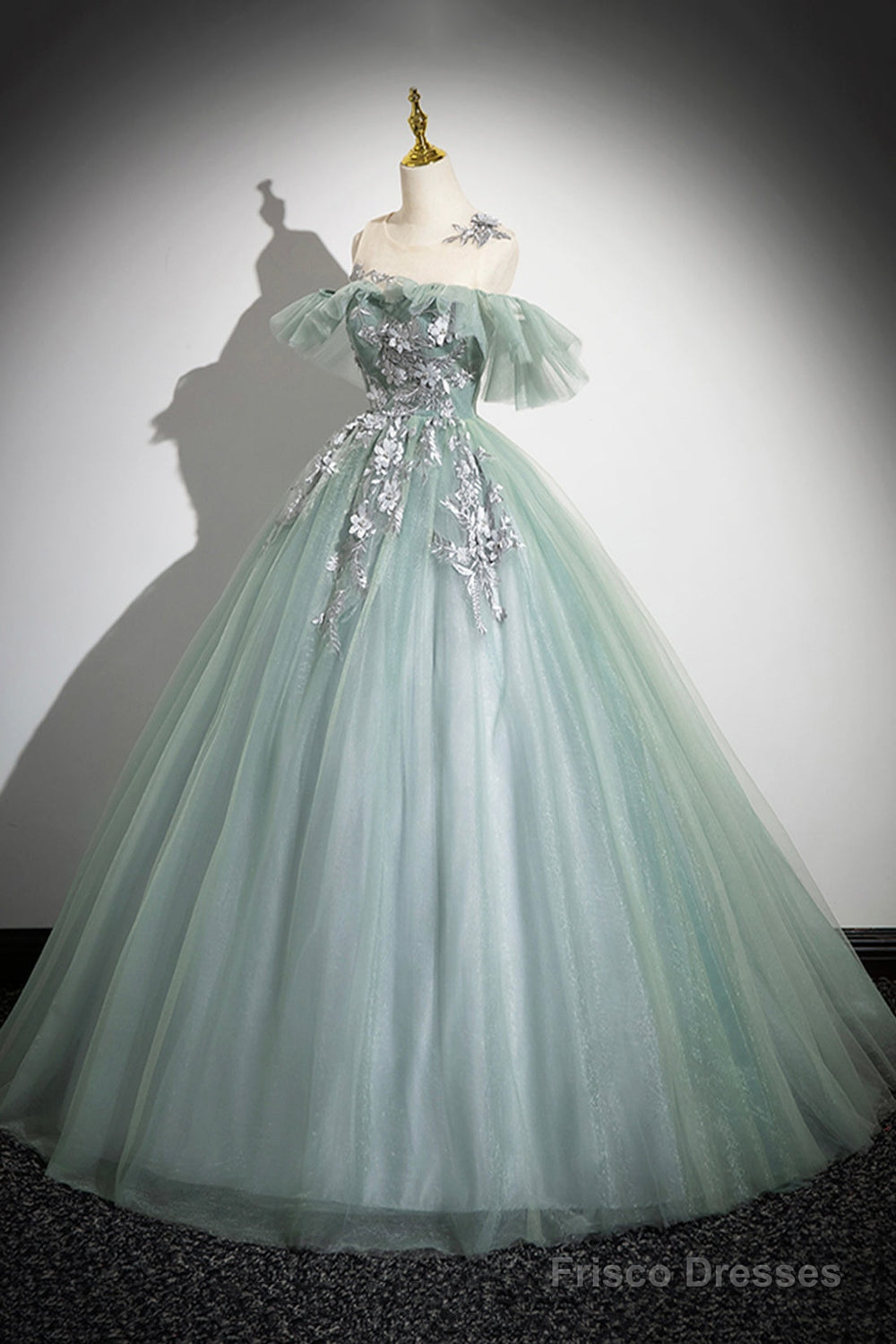 Cute Scoop Neckline Tulle Long Prom Dress With Lace, A-Line Off The Shoulder Evening Party Dress