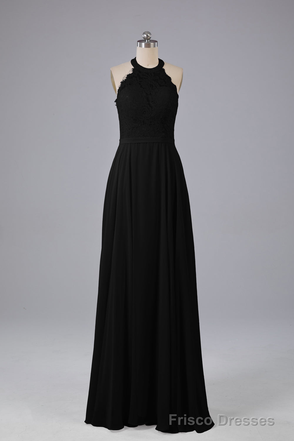 Elegant Halter Illusion Lace Floor Length Bridesmaid Dresses