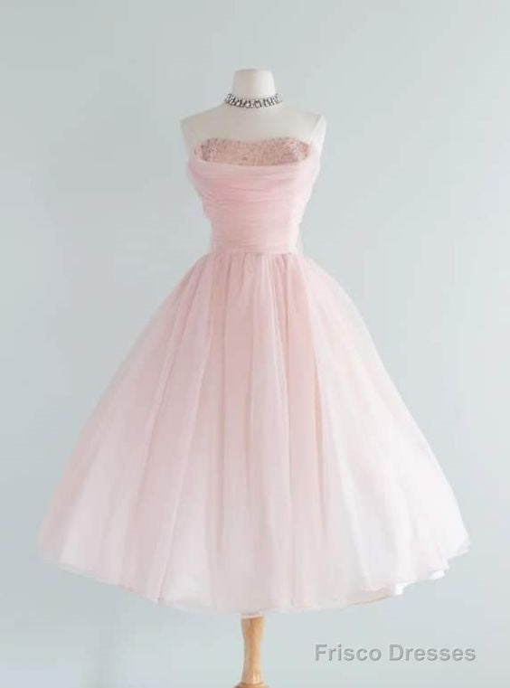 Fairy Ball Gown Strapless Pink Knee Length Prom Dresses Evening Dress