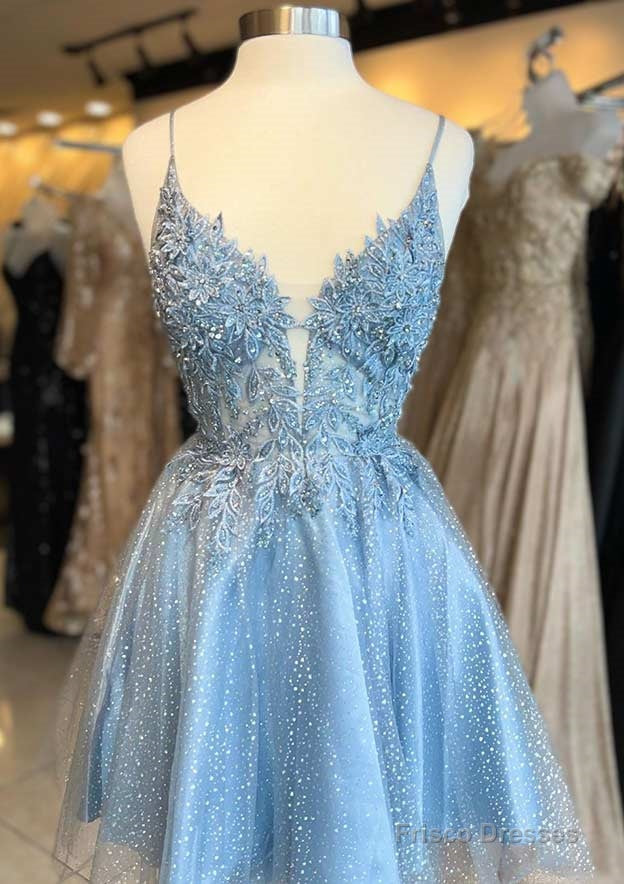Glittering Beaded Short A-line Tulle Homecoming Dress with Appliqued