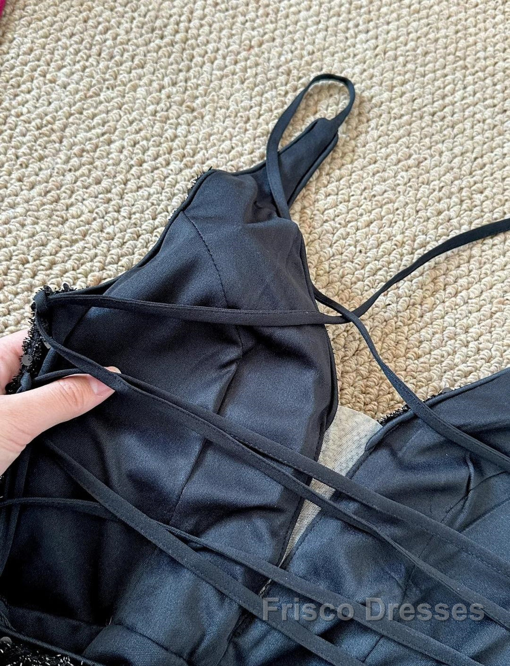 Gorgeous Black Sequin Mermaid Spaghetti Strap Vling Long Formal Prom Dress Backless Formal Evening Dress