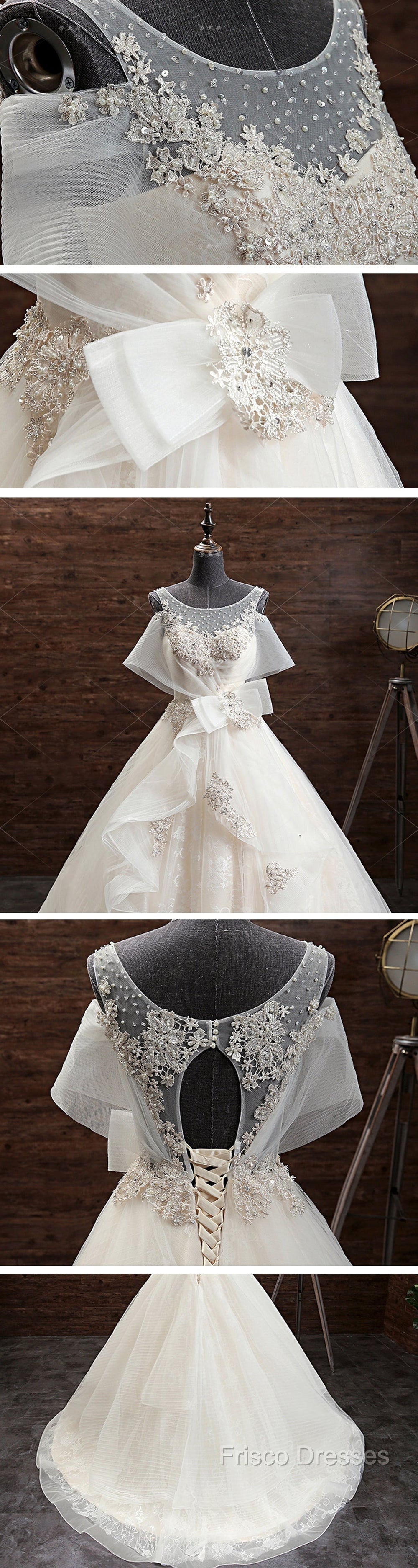 Gorgeous Princess Lace Appliques Beading Yarn Back Unique Sleeve Pretty Bow Ruffles Ball Gown Wedding Dress
