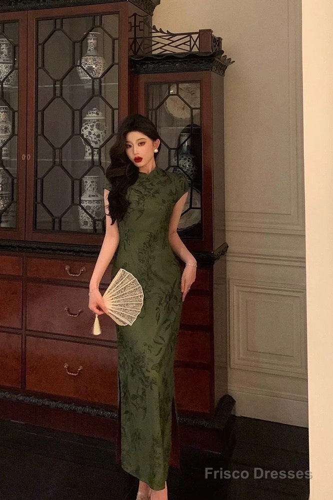 Gorgeous Sheath High Neckline Short Sleeves Green Date Night Dress Long Prom Dresses Birthday Outfits